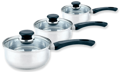 This three-piece saucepan set is perfect for all your cooking needs. Made from stainless steel, each pan features a glass lid with steam vent to lock in flavour and a thick encapsulated base for even heat distribution.